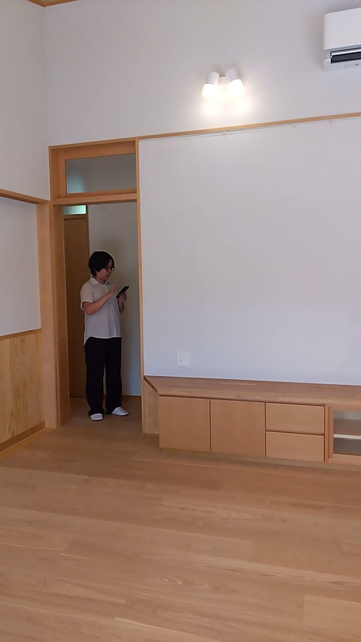 午後からはインスタグラムでルームツアーを投稿している「コノイエ」さんに動画撮影をしていただきました。ルームツアーの紹介は今回が2棟目となります。木の家の特徴や自然素材の紹介と光と風の取り入れ方などを説明させていただき、各部屋を下見しながら動画の段取りをしていました。こちらは全てスマホで撮影しました。リビングと水廻りやリビングと寝室をデッキテラスで回遊する間取りになっていて、生活スタイルに余白を残しながら木のぬくもりや安らぎを感じることができる住宅です。