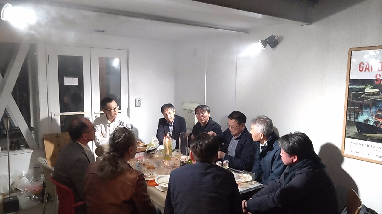 バーベキューと美味しいお酒を飲みながら建築家仲間と一緒に夜桜鑑賞。やはり最後は建築談義に。