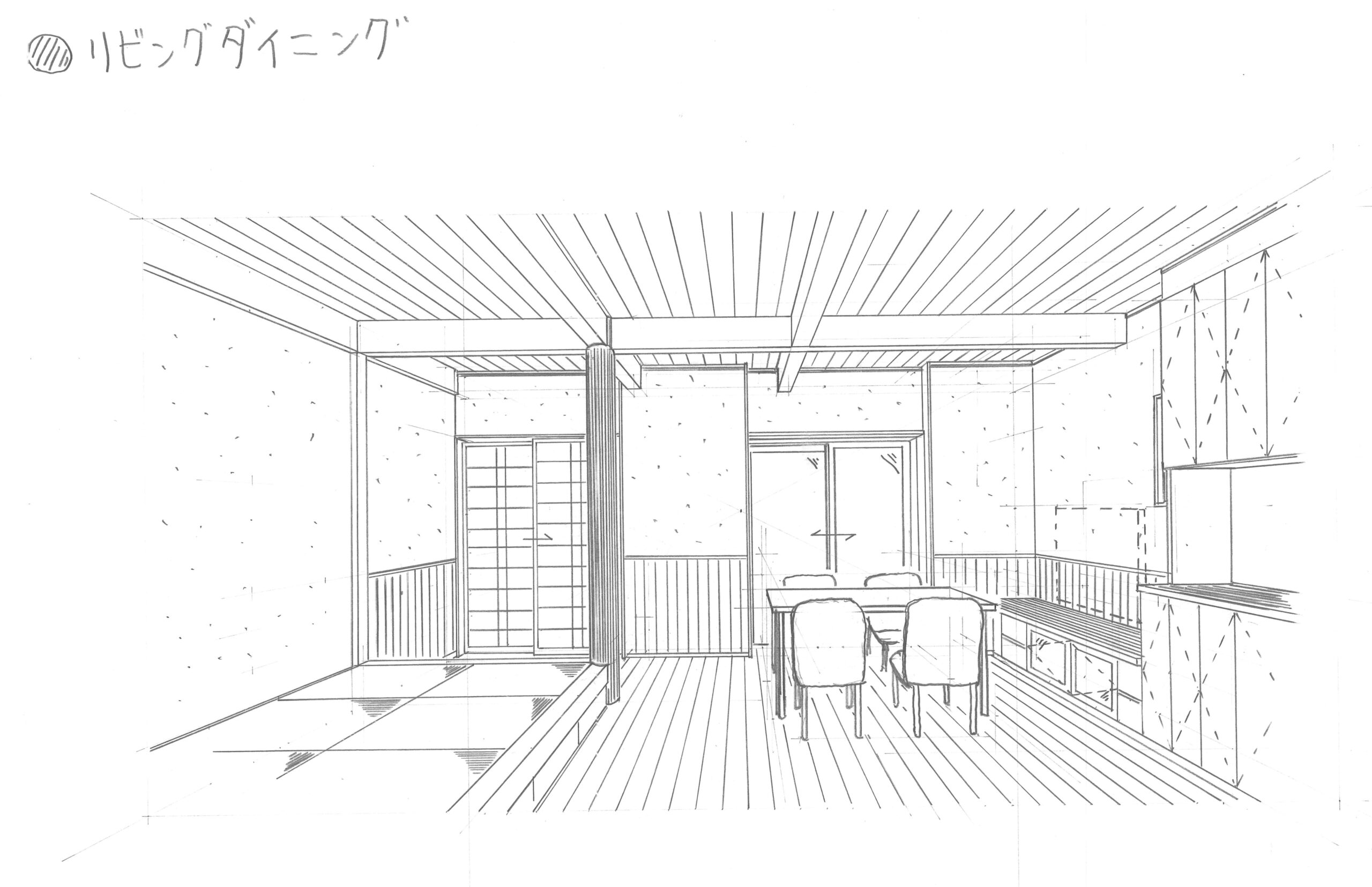 - 03月13日 豊島区目白の和モダンの木の家 イメージスケッチ @栗原