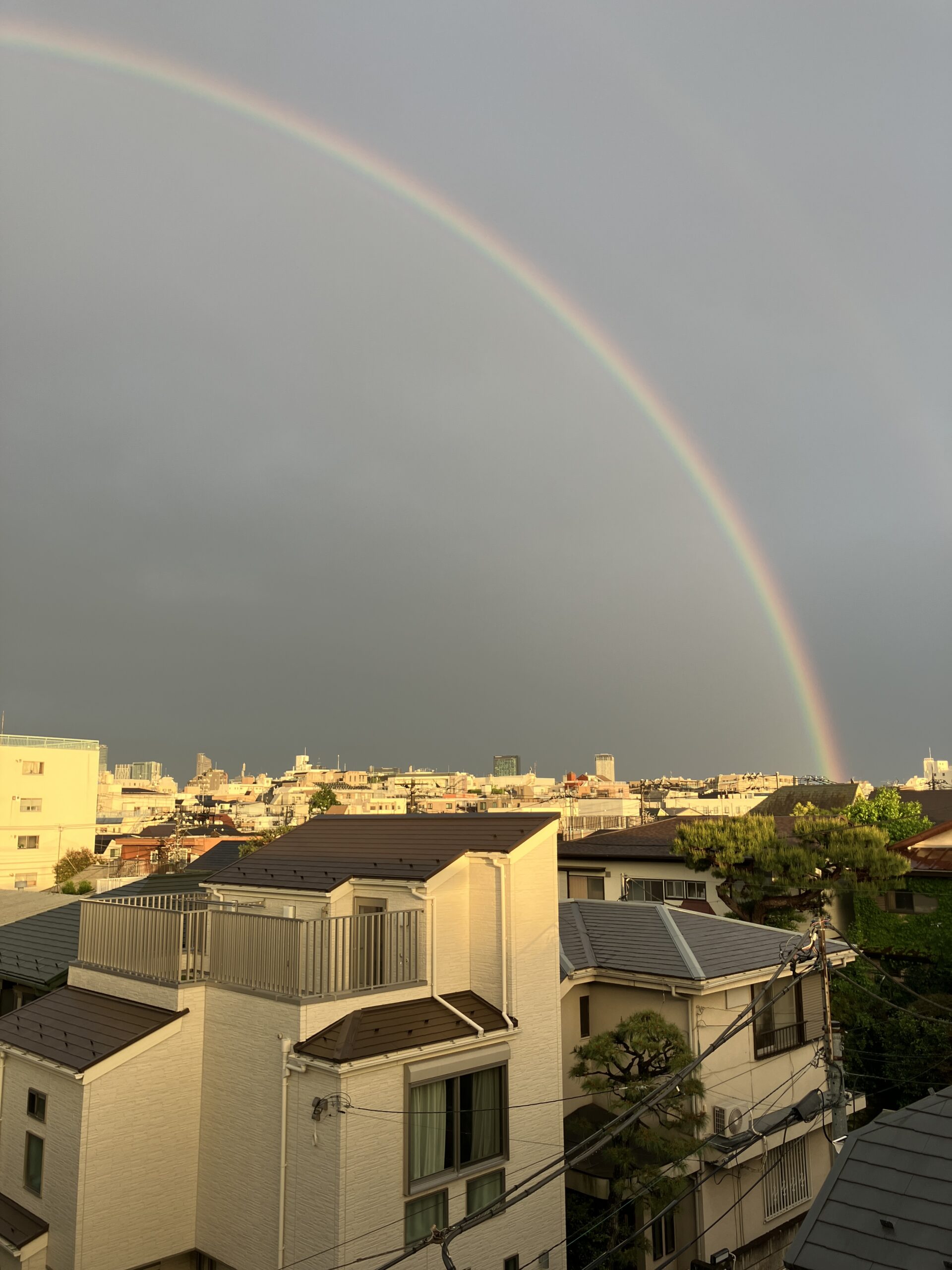 昨日の夕方に世田谷区北沢の自宅から大きな2連の虹が見えました。ほぼ半円の大きなきれいな虹でした。こんなにきれいな虹をみるのははじめてかも知れないです。なにか良いことあるかも…..です。